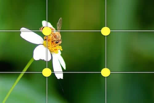 什么是“黄金分割”呢?简单一点讲,就是把你想要拍的画面以九宫格来划分,然后把画面中的主体放到网格线交叉的位置,也就是下图中四个黄点所在的位置。下图是在网上找的一张通过“黄金分割”法拍出来的照片,可以看到照片的主体是位于九宫格左上方的焦点上的。