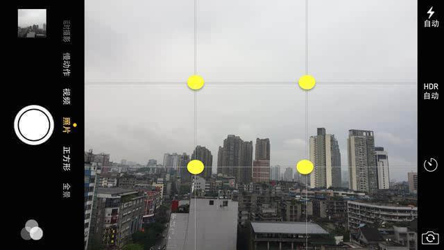 在我们平日里拍照时,都只是拿起手机拍照,界面是这样的,根本都没有意识到黄金分割这个技巧。对于我们而言,如果没有格子的参考,很难将照片按照准确的比例来划分。