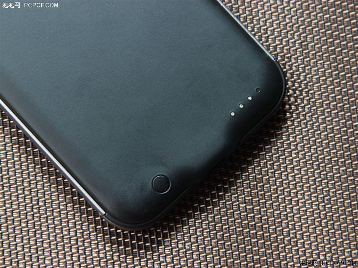 酷壳充电版的开关控制在背面底部,采用了实体开关按键,让操作按钮更加直观,同时也更为可靠。长按开关可以开始或关闭充电。右侧的四枚指示灯可以显示充电状态和酷壳的剩余电量百分比。