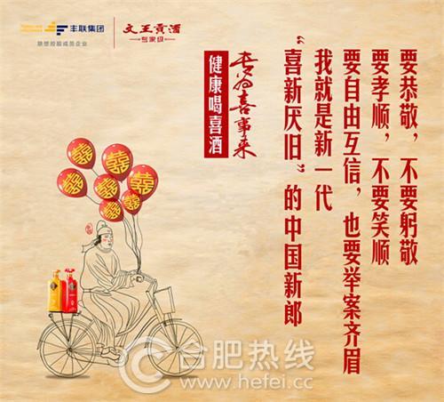 据丰联集团副总裁文王事业部总经理方焰介绍,文王纽约时代广场打广告倡导婚礼新风尚,最早的激发来自一外国朋友因新郎恶灌喜酒事情,对他抱怨道“原来安徽人结婚是这么喝的,感觉是在用生命结婚,太可怕了。”