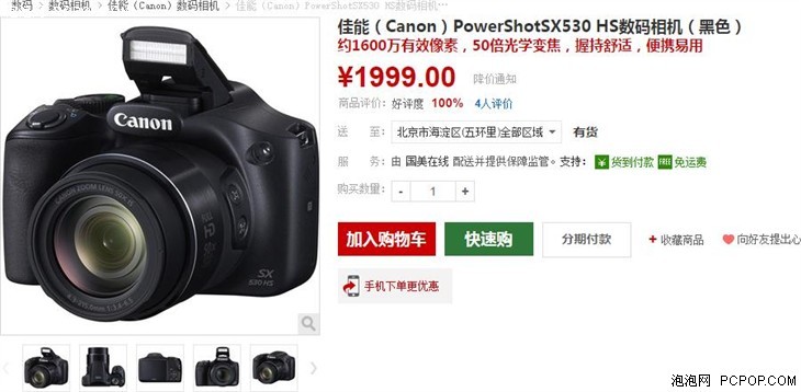 趣味十足 佳能SX530 HS 国美在线售价:1999元>>购买链接